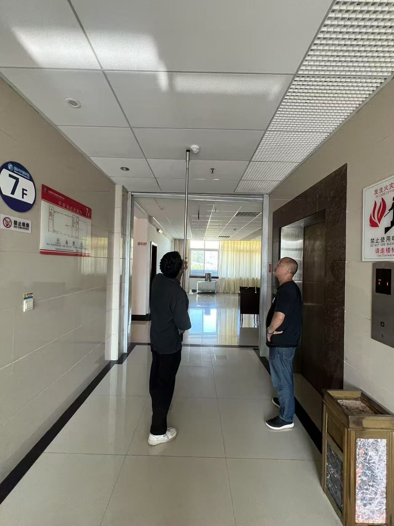 当日,保卫科工作人员严格依据相关标准和操作规程,对综合办公大楼内部各类消防设施设备开展了全面细致的排查检测工作。协同火灾报警系统维保人员逐项检测烟感、温感探测器灵敏度,并对报警主机联动功能进行专项查验,确保报警信号精准高效传输至消防控制室,为及时识别火情隐患提供技术支撑。针对灭火器材,工作人员逐一对压力数值、有效期限及布设位置进行核查,对压力不足及过期失效的灭火器予以更换,确保所有灭火器材处于可靠、完备状态。在消火栓及喷淋系统检测环节,工作人员系统开展消火栓水压达标测试,并对喷淋系统末端试水装置实施效能检验,切实保障供水系统应急处置效能,确保突发火情时能够迅速有效扑灭火情。此外,相关人员模拟断电环境,通过测试应急照明持续时长及疏散指示标志清晰度,以确保突发火灾情况下能为人员疏散提供清晰有效指引。