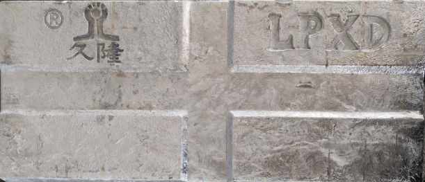 3、物理规格及包装:锌锭为长方梯形,底部有打捆凹槽。其规格尺寸:约430*210*50mm,单重约24kg。包装形式:镀锌钢带,规格为宽32mm,厚0.9mm,短边“川”字形均匀打捆四道。